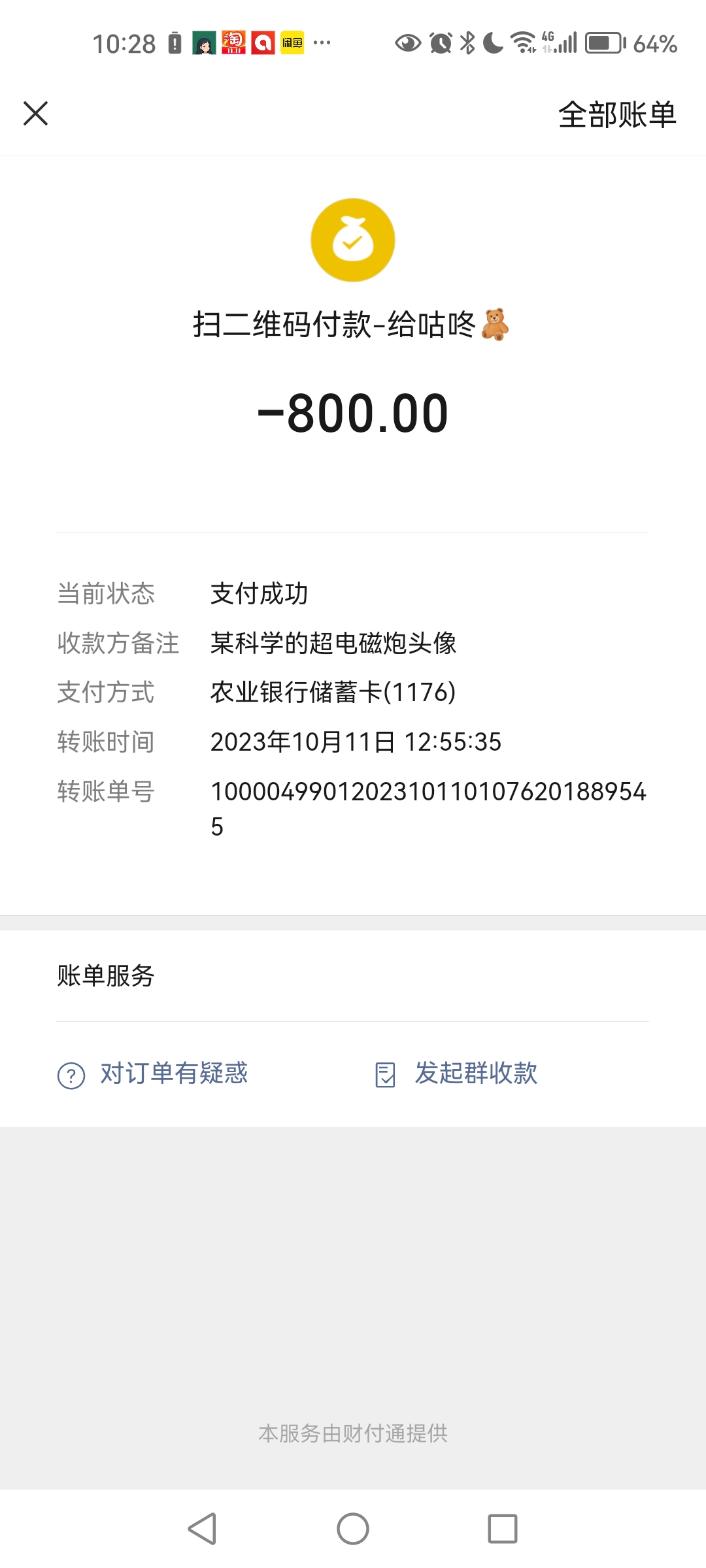 是否现款:true 是否到货:false 期货时间:1y 货到付款:false 订单金额:800 交易凭据 B站私信